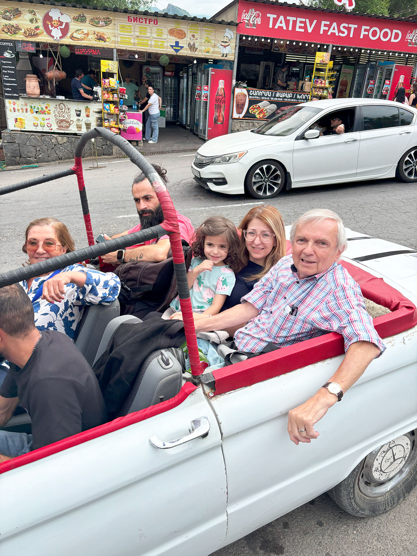 ![]() Our new Armenian taxi, looking down on the Tatev monastery. Looks like it has Mercedes wheels, but I am not sure what the brand of the car is. CLICK HERE FOR ONE MORE SHORT VIDEO OF FUN THE TAXI RIDE. |