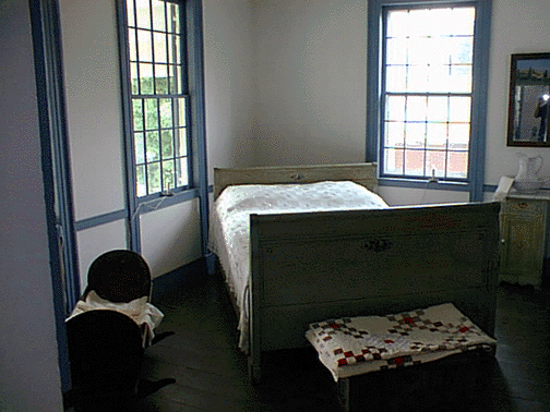 ![]() Rope bed with a rope-bed tightener, straw mattress. Why do we still say "sleep tight and don't let the bed-bugs bite". Pratt's family had to make the bed "tight" for a comfortable night's sleep and make sure no bugs were in the straw. You can see how that was constructed. |
