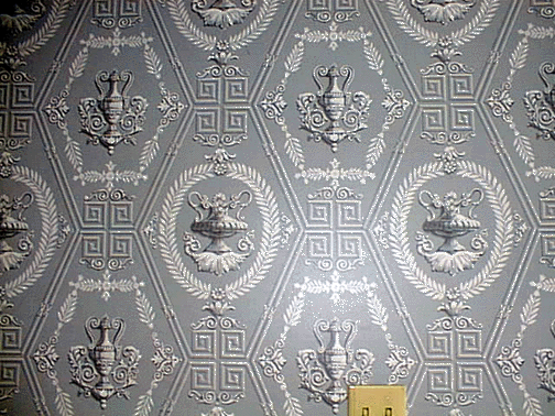 ![]() Wallpaper - Reproduction of original wallpaper found in the hall, reputed to be French (18th Century), reproduced by Katzenbach & Warren for the Williamsburg collection Portrait of Mary Watson Pratt - restored by New York University Grandfather Clock - Silas Hoadley, Plymouth, CT, circa 1812 |