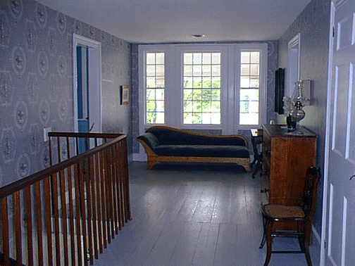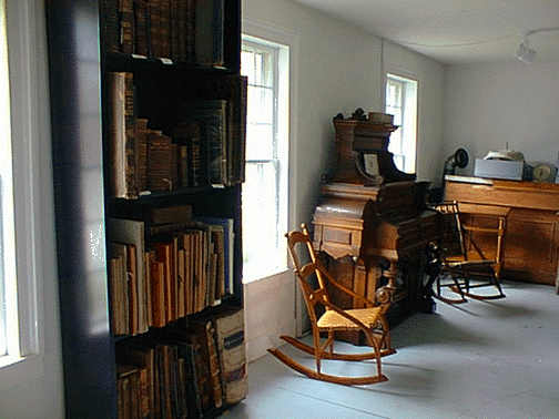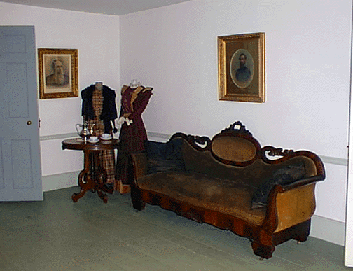 ![]() By front window - chaise (birdseye maple) 1855 by Jacob Myers, a Huntersfield cabinet maker. Also an Isaac Searles desk, dated 1866, made at the Searles Furniture factory. |