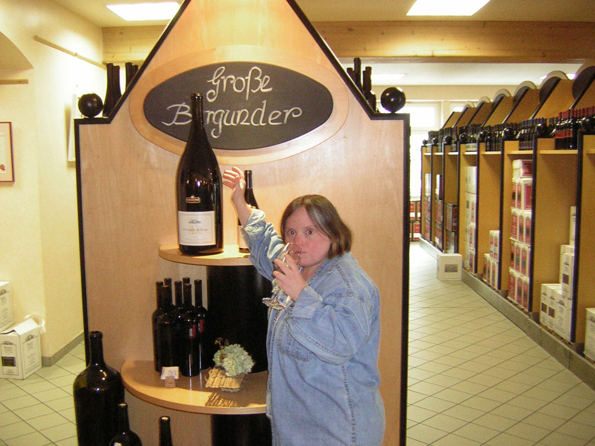 ![]() Jenny testing an Ahr valley wine ... actually just grape juice. Click to see a large image. |