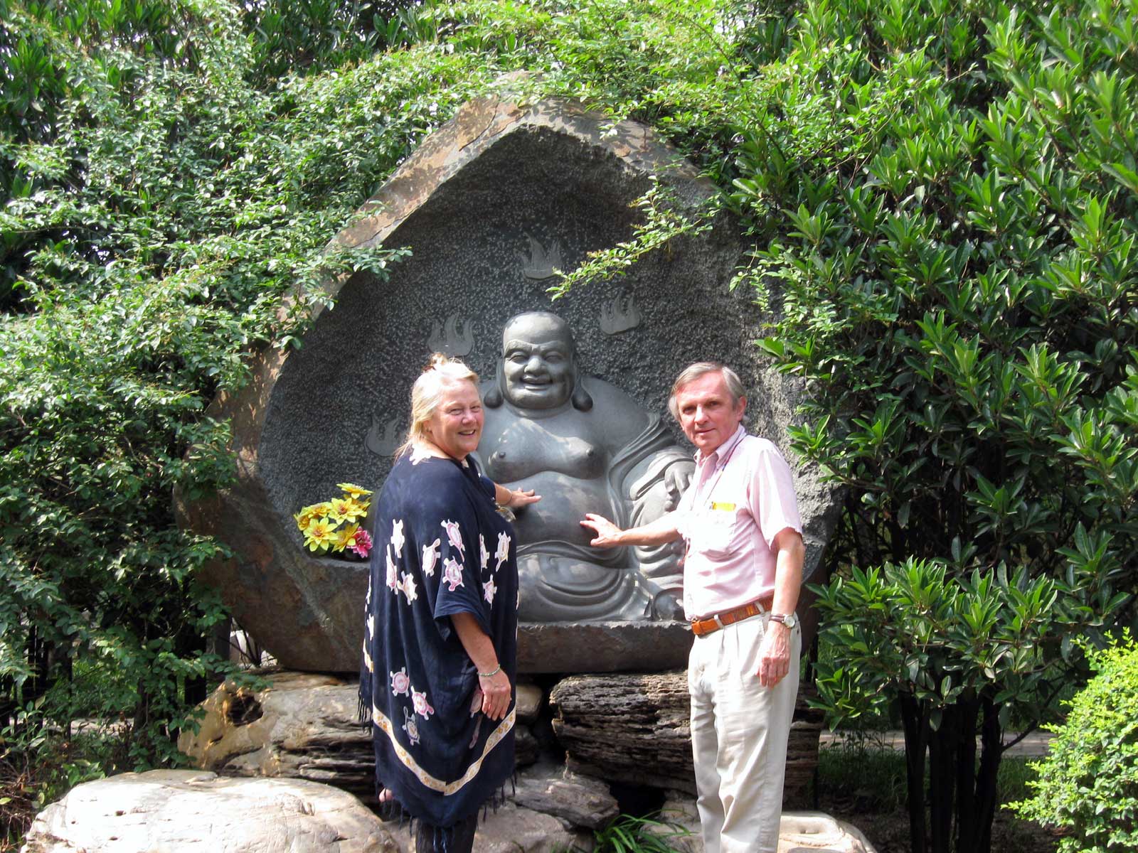 ![]() If you rub the Fat Laughing Buddha's belly, you will have good luck. Click for a large image. |